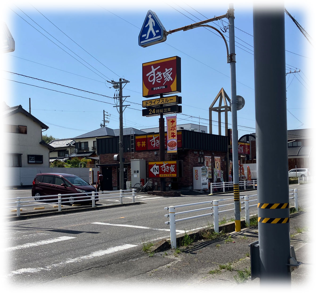 県道に出て交差点を南下すると、徒歩5分程度で「ガソリンスタンド」「すき屋」「ファミリーマート」があります。このショップはガレージライフにおいて非常に重要なアイテムです。時間を忘れガレージでの作業に没頭し、気づいたらお昼を過ぎていたなんて時、これらのショップが重宝します。飲み物とお弁当を購入し、自分のガレージで食べる・・なんてこともできます。想像するだけでも楽しくなりますね。至福の時間です。