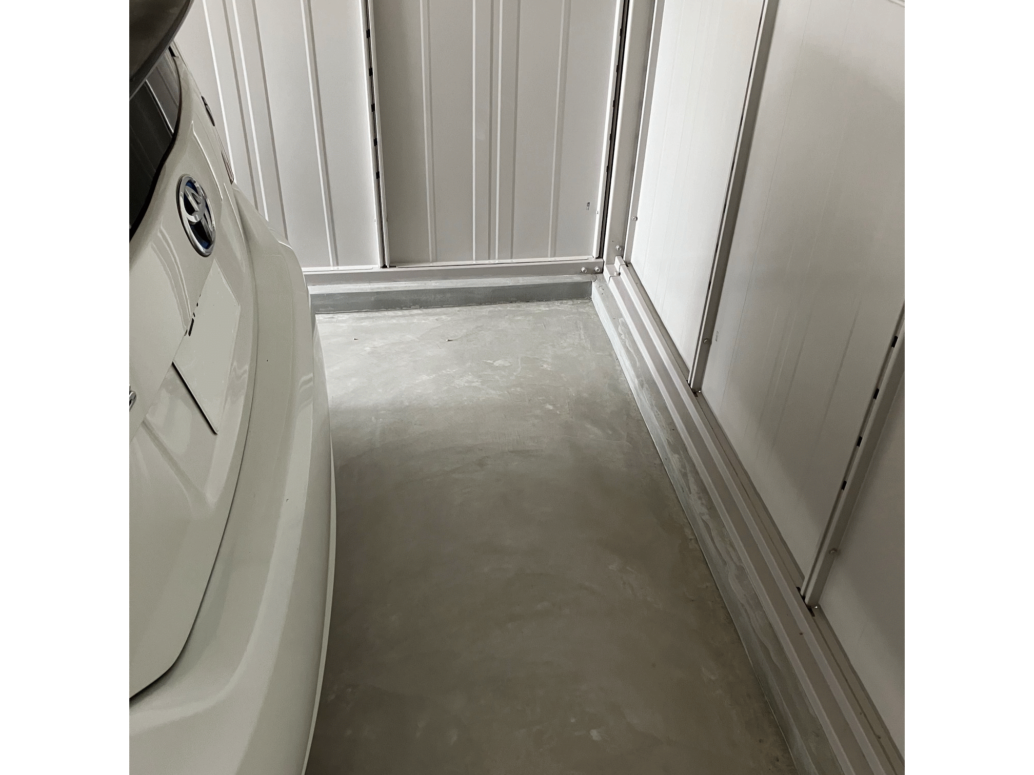 コンクリートの床です。なにか作業台のようなものやラックを作ってもいいですね。ヨドの標準棚もスペース活用にはお勧めです。