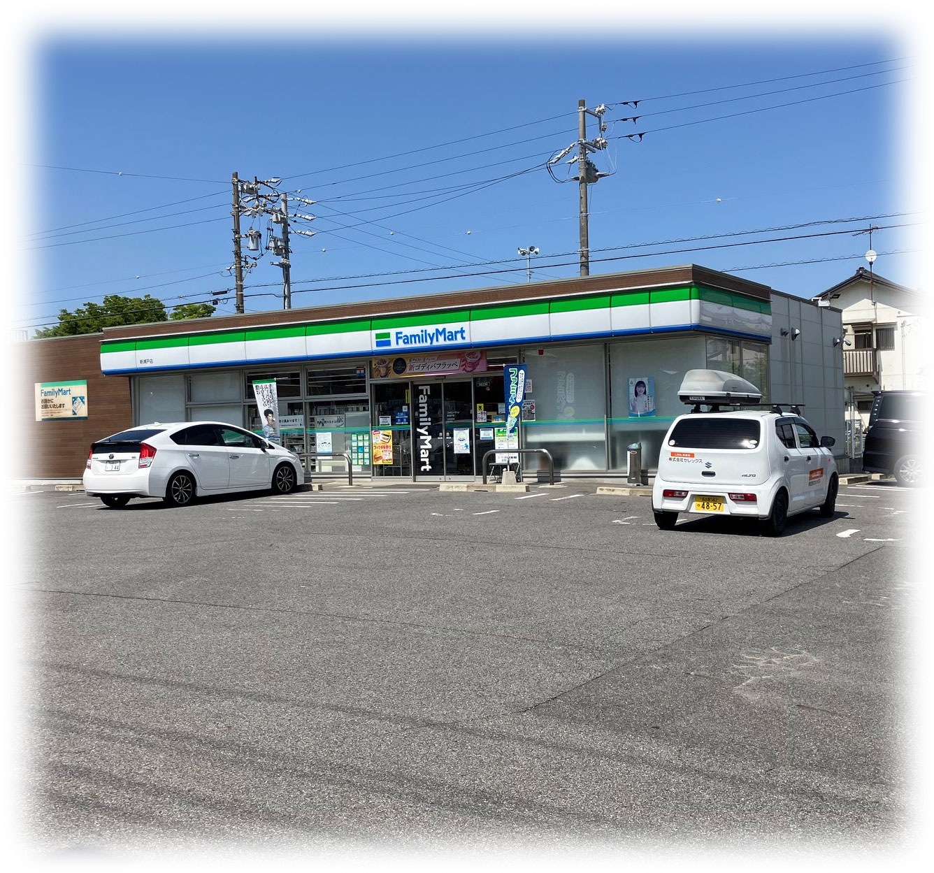 県道に出て交差点を南下すると、徒歩5分程度で「ガソリンスタンド」「すき屋」「ファミリーマート」があります。このショップはガレージライフにおいて非常に重要なアイテムです。時間を忘れガレージでの作業に没頭し、気づいたらお昼を過ぎていたなんて時、これらのショップが重宝します。飲み物とお弁当を購入し、自分のガレージで食べる・・なんてこともできます。想像するだけでも楽しくなりますね。至福の時間です。